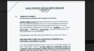 Los propietarios de Webster’s Community Pharmacy en Altadena le dijeron a Pasadena Now que recibieron un segundo aviso para desalojar las instalaciones por no pagar el alquiler. El segundo aviso llegó menos de una semana después de que Calitex LLC envió el pri... More »