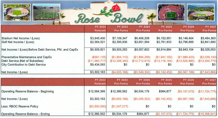 El plan, explicó el RBOC, está destinado a garantizar que Rose Bowl y Brookside Park continúen teniendo un presupuesto operativo anual equilibrado en los años venideros.