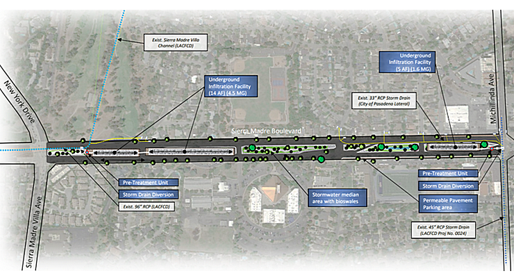 El Proyecto de captura de aguas pluviales de Sierra Madre Boulevard Green Street es una instalación local y regional de captura e infiltración de aguas pluviales propuesta dentro de la mediana de Sierra Madre Boulevard.