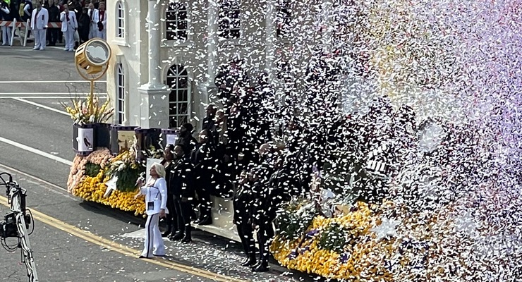 El 134º Desfile de Rose el lunes fue un espectáculo perfecto de carrozas cubiertas de flores, actuaciones musicales de bandas de música de todo el país y una gran cantidad de ecuestres, con decenas de miles de espectadores que recubren a Colorado Boulevard y otras calles de Pasadena para presenciar la tradición anual de la tradición anual. . El evento anual parecía impecable.