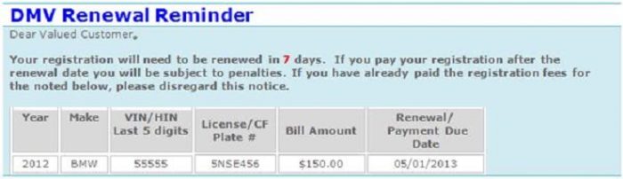 El DMV comenzará a enviar avisos electrónicos de renovación a los clientes elegibles que opten por participar a partir de este mes para los registros de vehículos que vencen en mayo. El DMV envía avisos de renovación al menos 60 días antes de que venza un registro y no comparte las direcciones de correo electrónico de los clientes con empresas privadas.