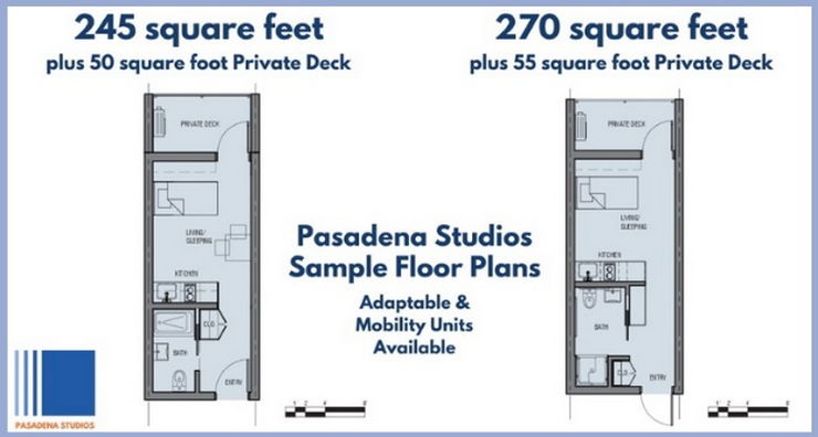 Una microunidad típica en Pasadena Studios Project medirá 220 pies cuadrados, según los desarrolladores del proyecto. Algunas unidades serían más grandes de acuerdo con la Ley de Estadounidenses con Discapacidades.