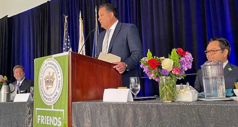 El alcalde Víctor Gordo durante el 49.º desayuno anual de oración interreligiosa del alcalde de Pasadena el 5 de mayo de 2022 [Foto de Eddie Rivera/Pasadena Now]