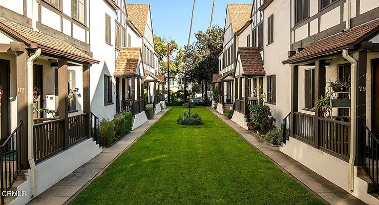 Norman Villa, en 73-87 1?2 N. Catalina Avenue se compone de 16 unidades de casas adosadas dispuestas en forma de casa adosada con ocho unidades frente a frente a cada lado de un patio central con césped.