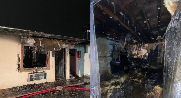 Los bomberos que llegaron poco después de que se informara el incendio a la 1:15 a. m. se encontraron con un fuerte fuego proveniente de las ventanas y la puerta de una sola unidad en el lado este del complejo, según la portavoz del Departamento de Bomberos, Lisa Derderian.