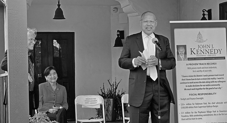 “Pasadena sufrió un revés trágico con la muerte prematura de John Kennedy, quien aportó energía y compromiso a sus esfuerzos por crear una ciudad mejor”, dijo el alcalde emérito Bill Bogaard.