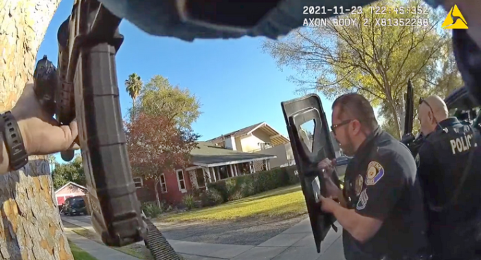 En total, se publicaron 10 videos del incidente que terminó cuando la policía disparó fatalmente al sospechoso armado Devin Edward Hall, de 24 años, el 23 de noviembre.