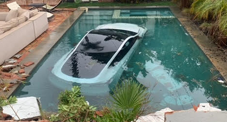 “Un conductor de Tesla pisó el acelerador en lugar del freno, atravesó una pared y se metió en una piscina”, dijo la oficial de información pública de Pasadena, Lisa Derderian, en un comunicado.
