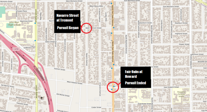 El vehículo finalmente se detuvo en Fair Oaks Avenue en Howard Street, dijo.