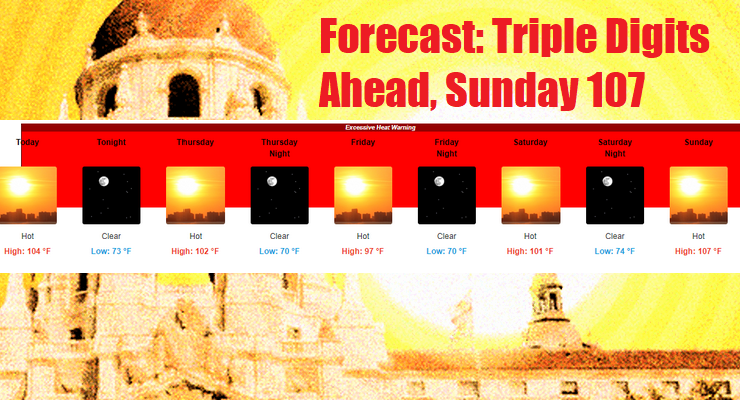 La esperada ola de calor del fin de semana del Día del Trabajo que asolará Pasadena recibió una puesta a punto del Servicio Meteorológico Nacional temprano hoy, y la noticia es que los meteorólogos ahora esperan que la Ciudad de Roses se marchite bajo cielos de 107° el domingo.