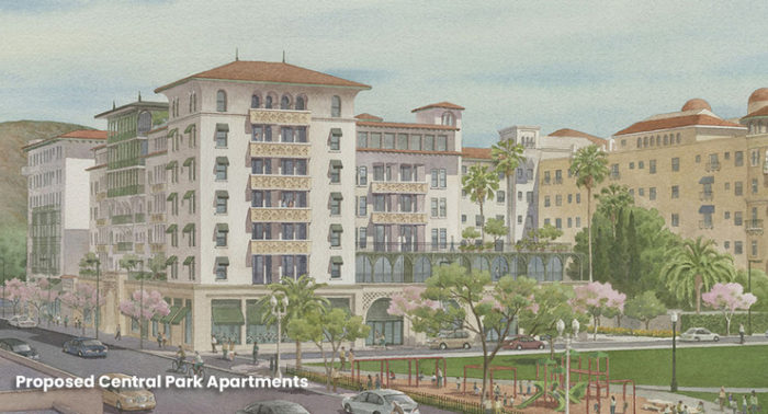 El desarrollador con sede en Culver City, Goldrich Kest, quiere construir un proyecto de uso mixto que incluya 84 unidades, 16 de ellas asequibles, en la esquina de South Fair Oaks Avenue y East Dayton Street, directamente al otro lado de la calle de Central Park y justo al lado de tanto el histórico Castle Green como el Green Hotel Apartments.