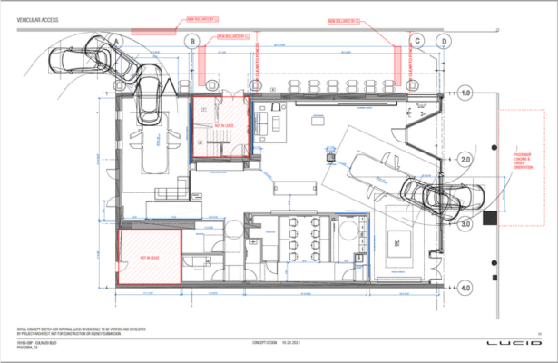 El espacio incorporará un showroom interior que exhibirá un máximo de dos vehículos, según planos presentados al Departamento de Planificación y Desarrollo Comunitario. Dentro de la sala de exposición, los representantes de la empresa pueden recibir a los clientes y discutir los precios, los pedidos de vehículos y permitirles probar la experiencia de conducción de Lucid Motors con pruebas de conducción reales o mediante tecnología de realidad virtual, dijo el Departamento de Planificación.